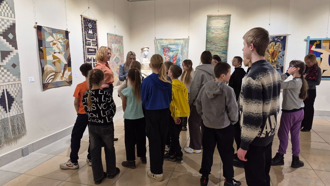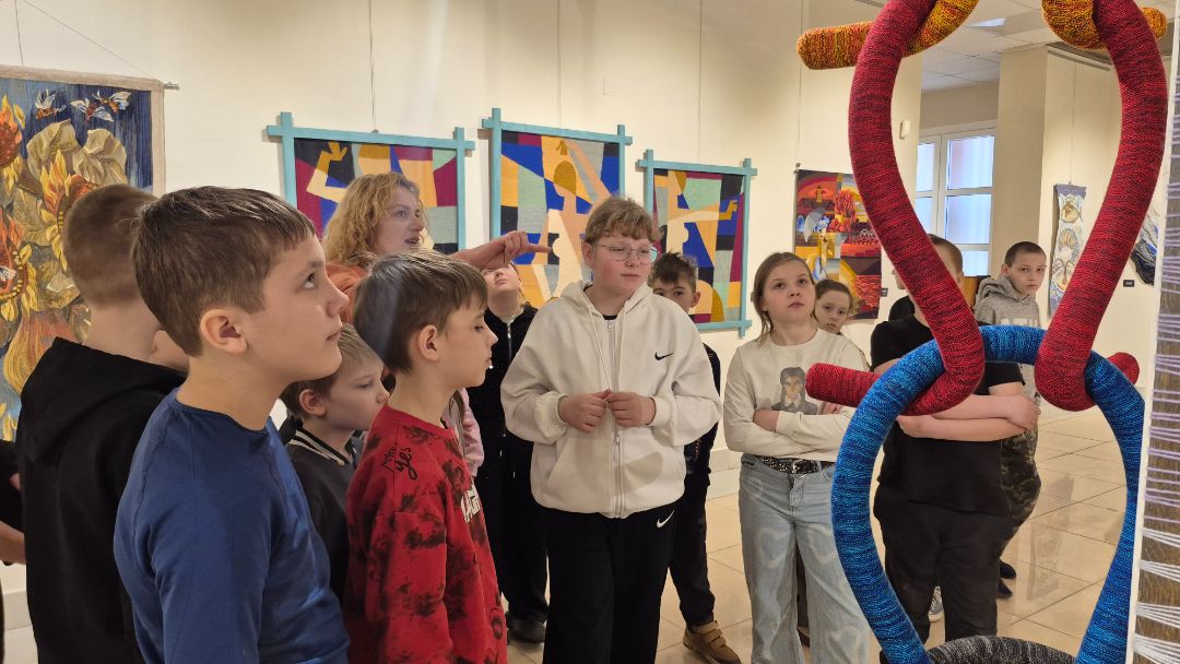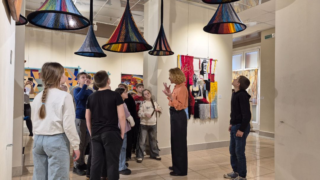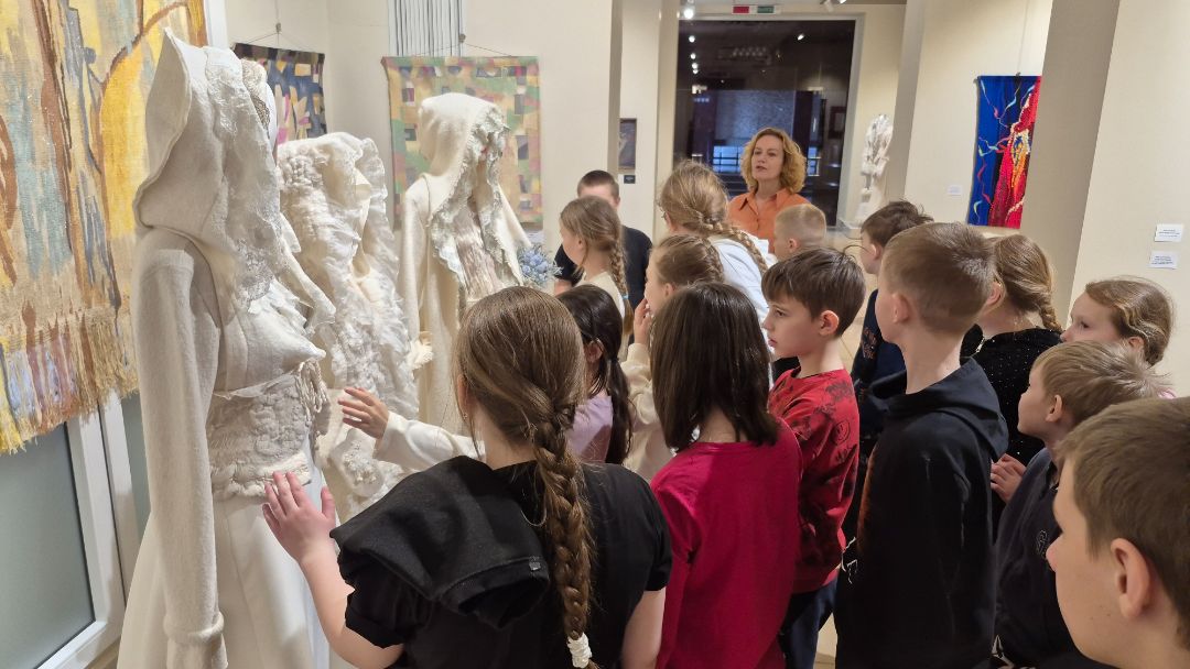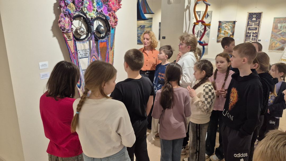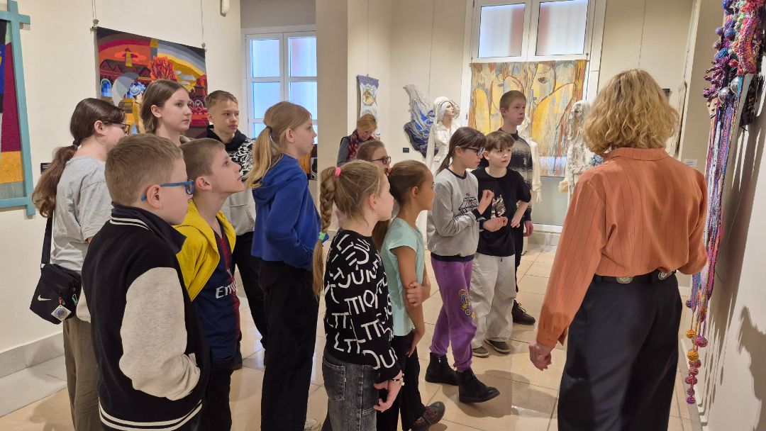На экскурсии по выставке "Текстильный арт-код" ребята узнали, что такое декоративно-прикладное искусство и текстиль, его историю, происходящую от ткачества, росписи по ткани, валянии шерсти, о том, как украшали свои жилища наши предки.