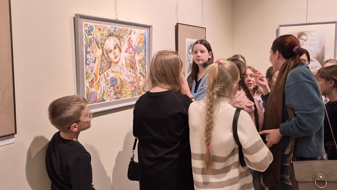Ученики Детской школы искусств им. В.А. Домарада г.Бобруйска практикуются в копировании произведении, посвящённых Великой Отечественной войне на выставке "Памяць пакаленняў" из фондов Белорусского союза художников, которая экспонируется в Бобруйском художественном музее.
